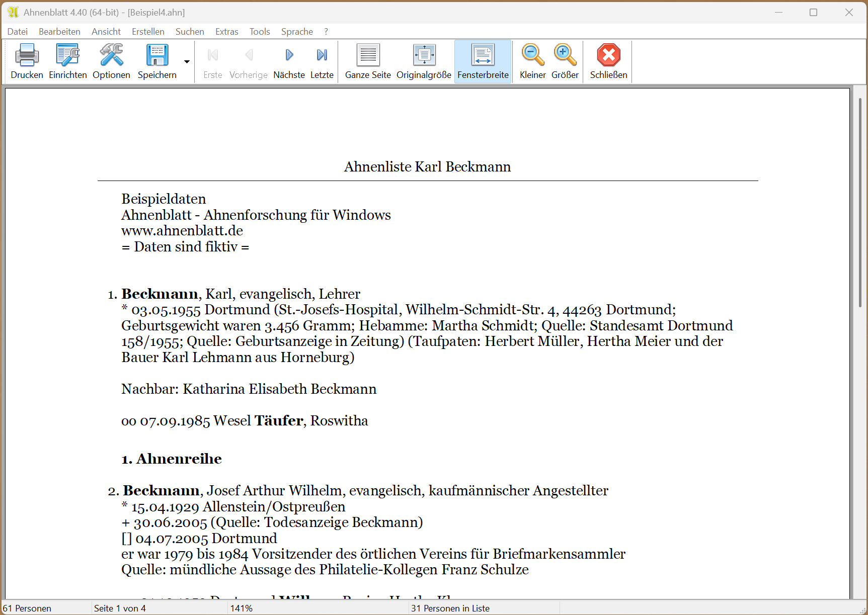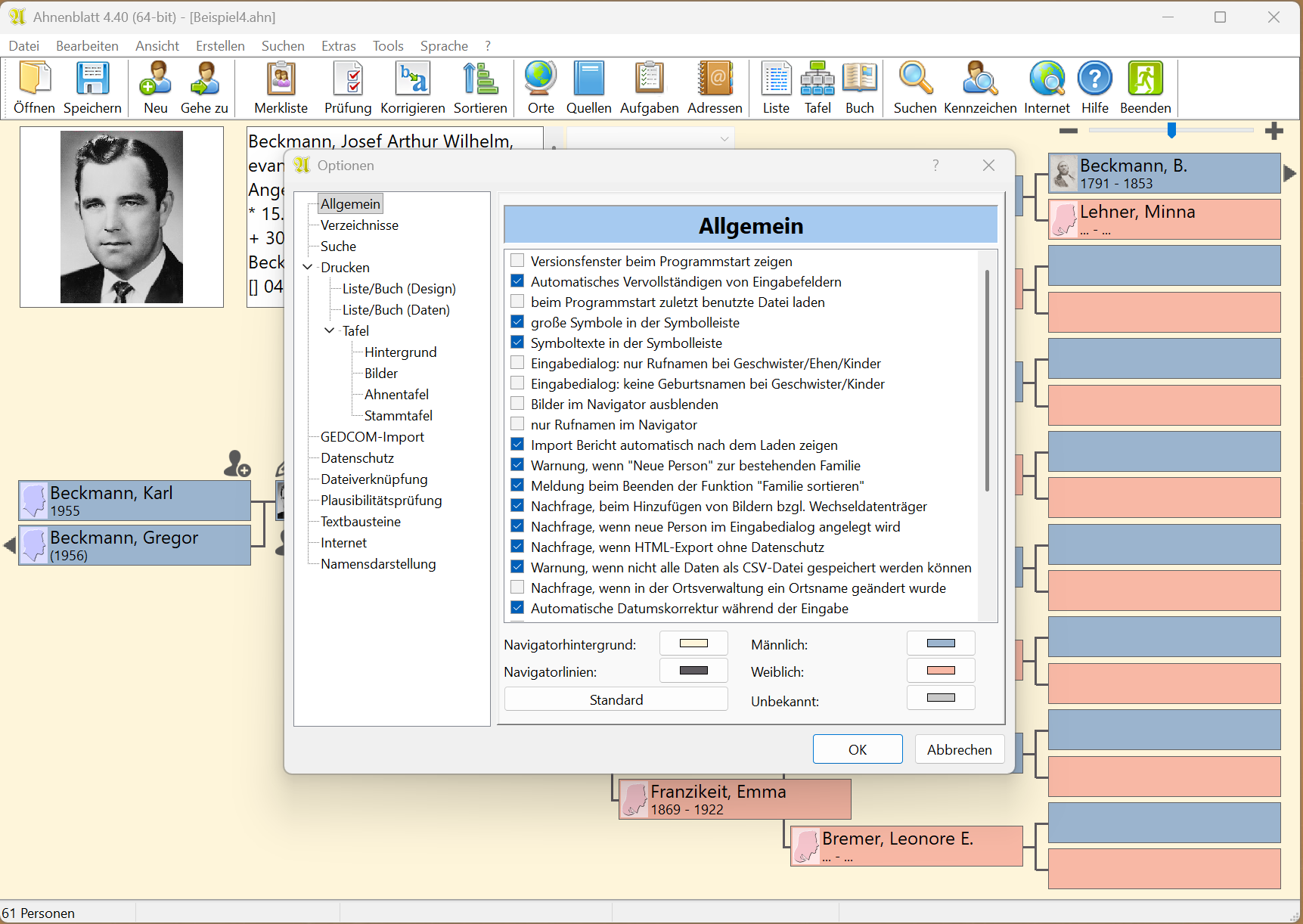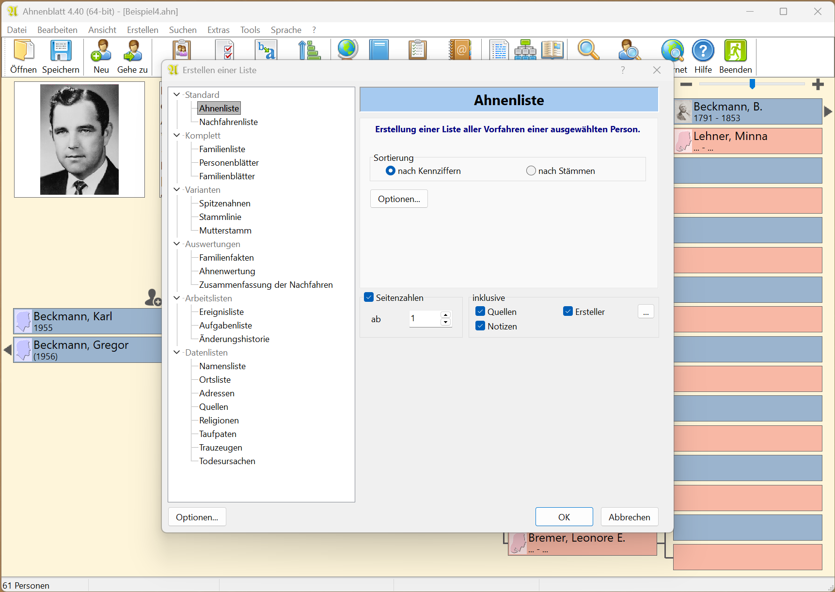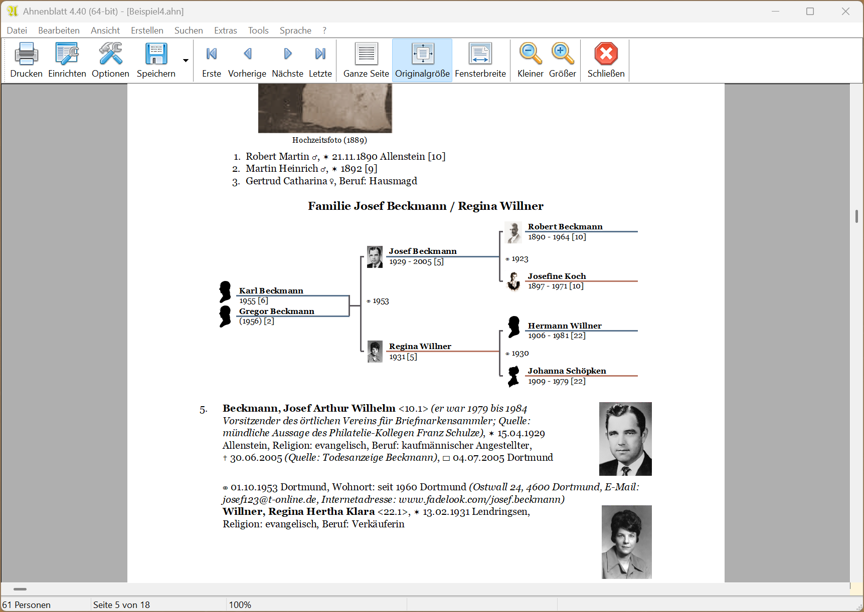 Hier die Programmoberfläche von Ahnenblatt in Bildern (durch Anklicken werden vergrößerte Bilder angezeigt):