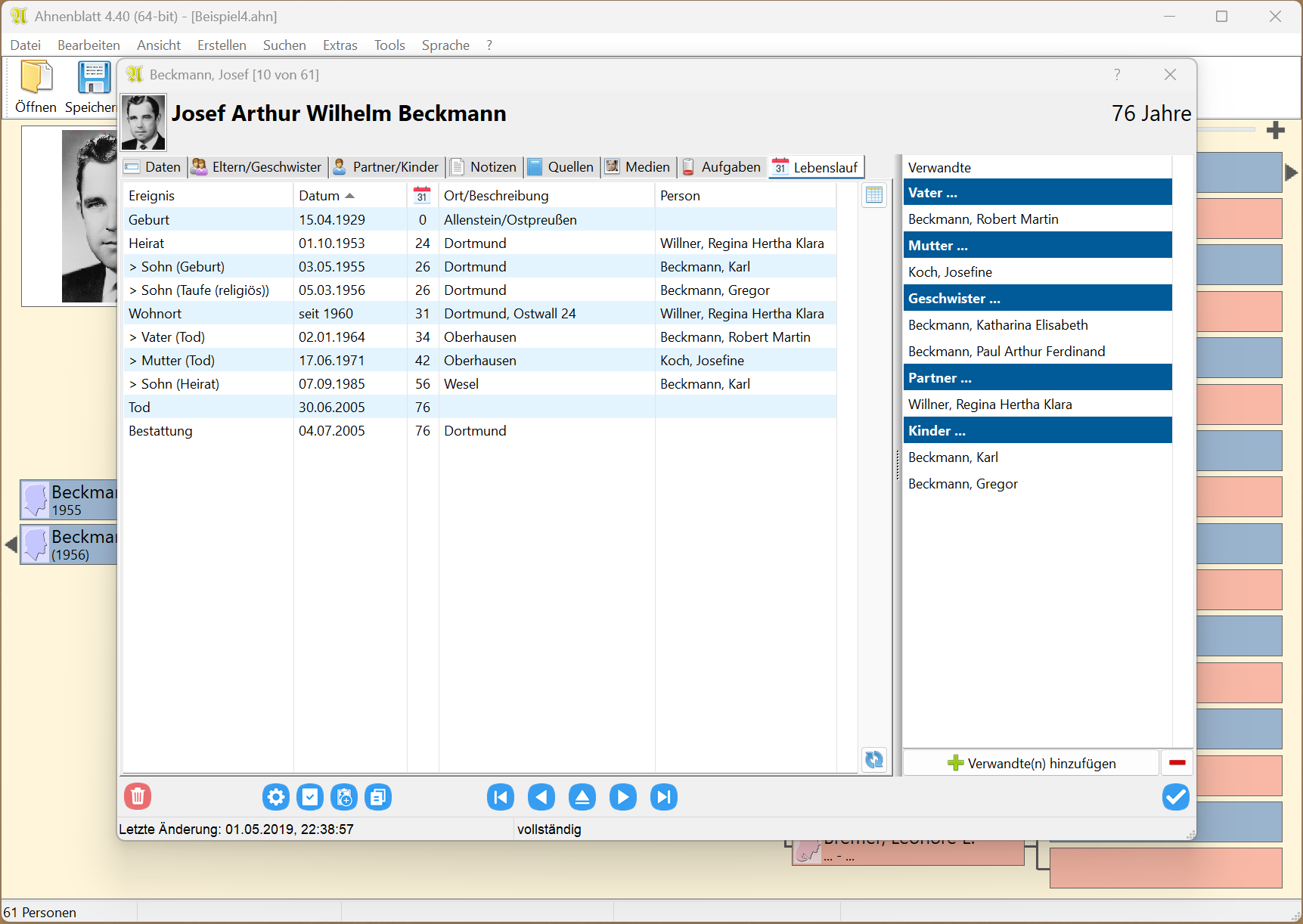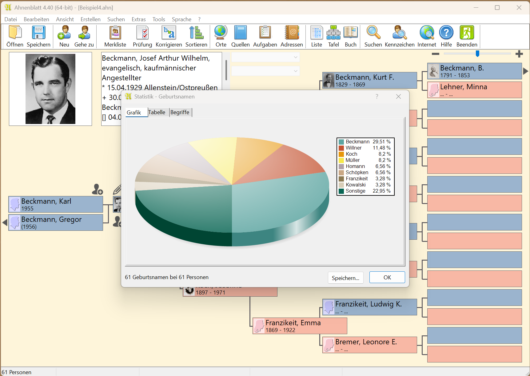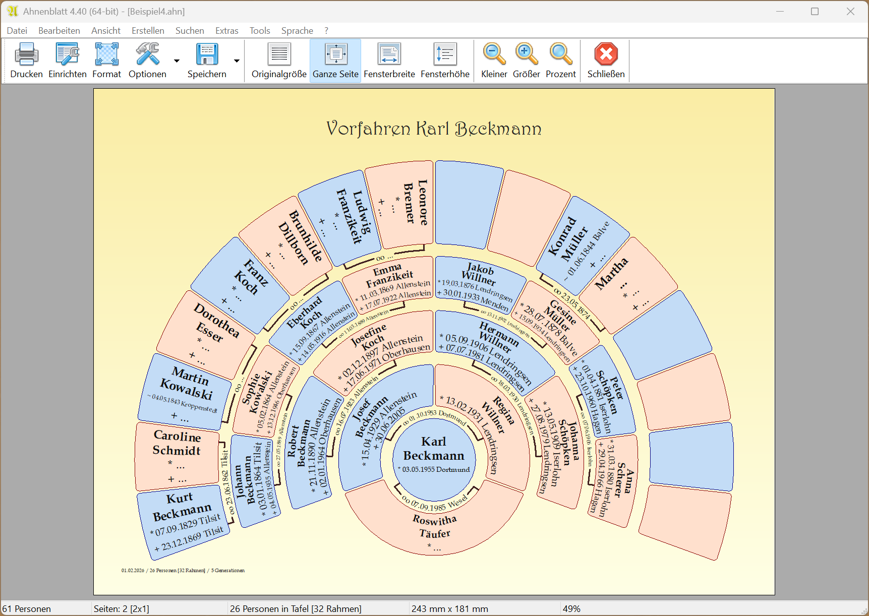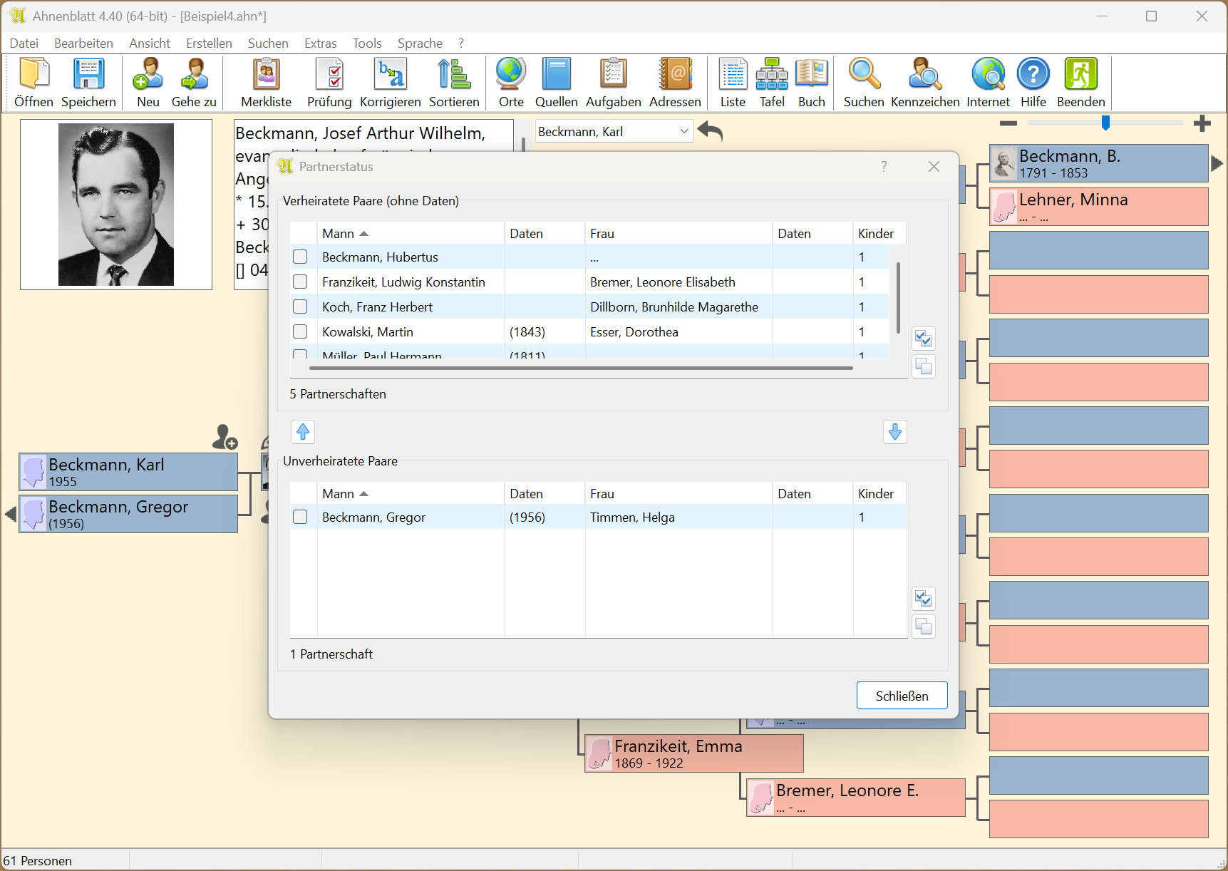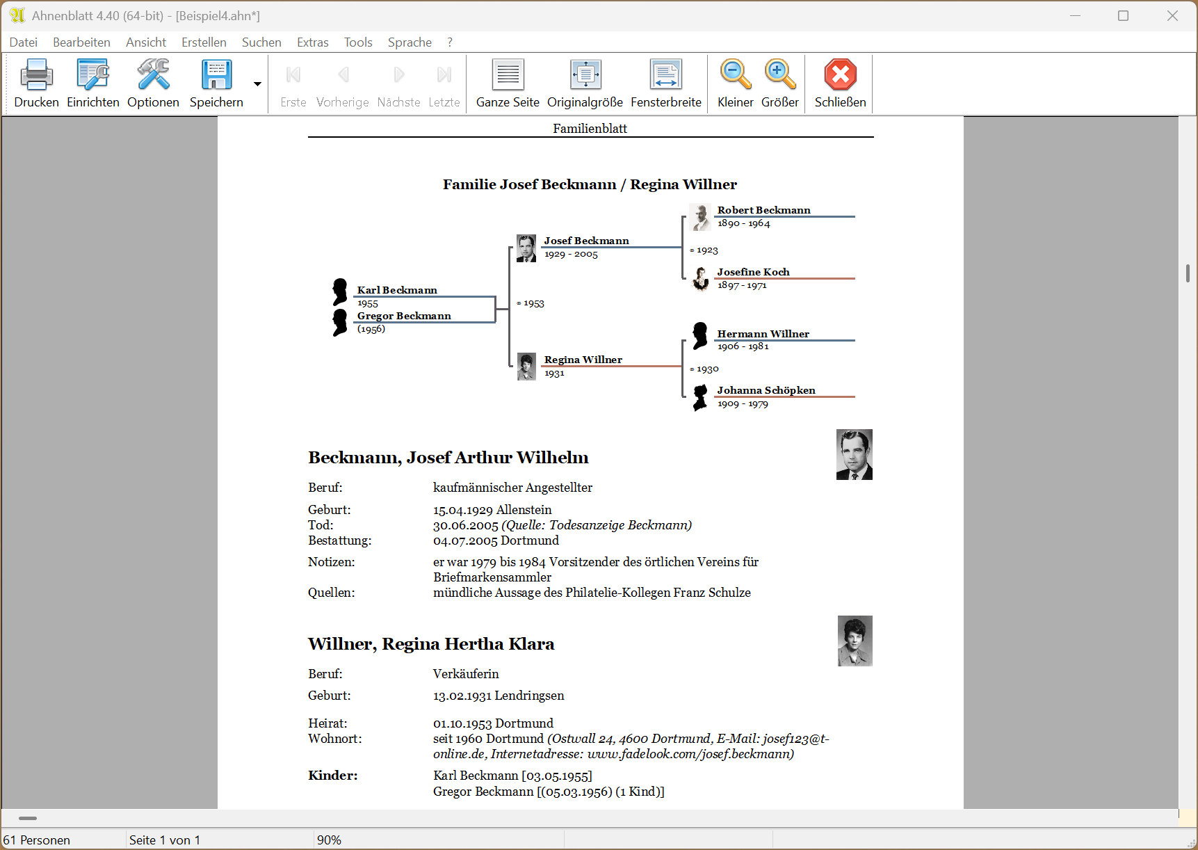Hier die Programmoberfläche von Ahnenblatt in Bildern (durch Anklicken werden vergrößerte Bilder angezeigt):