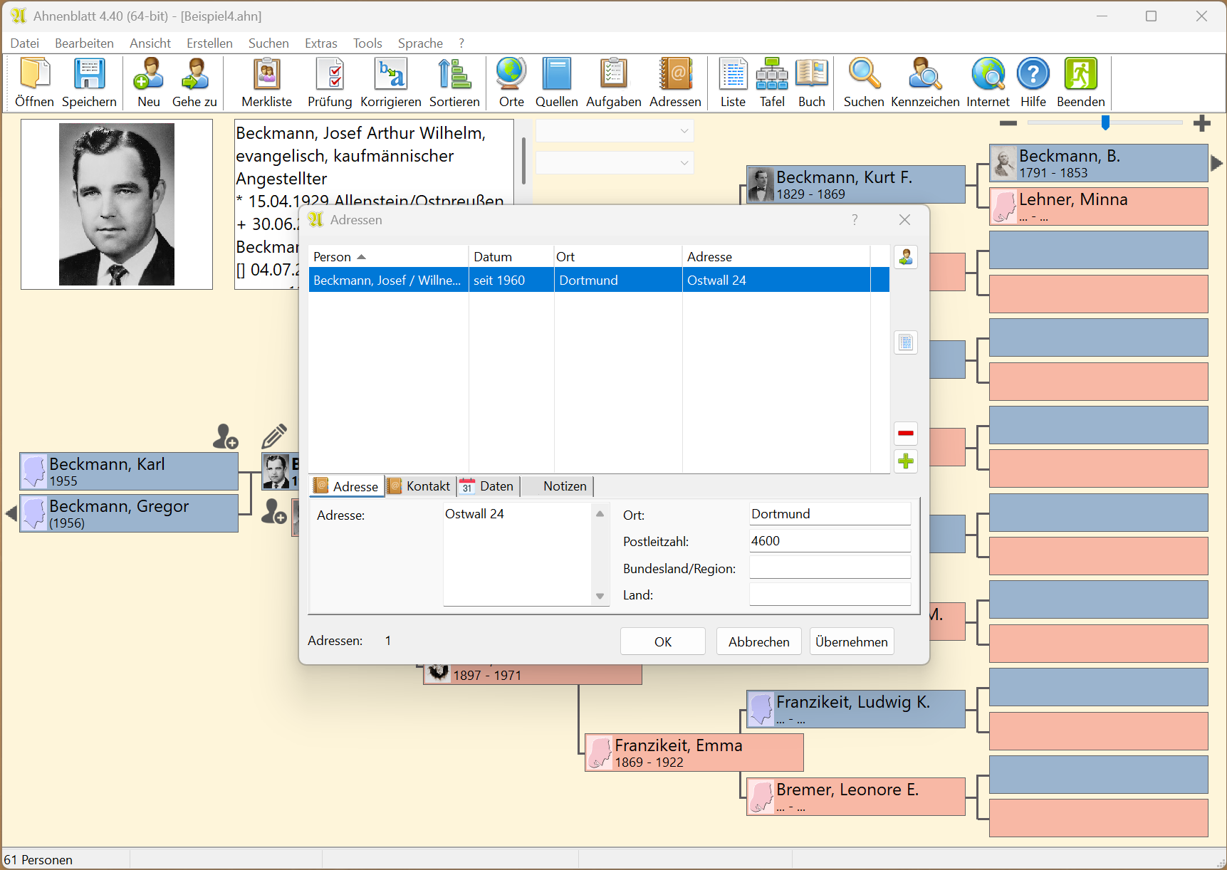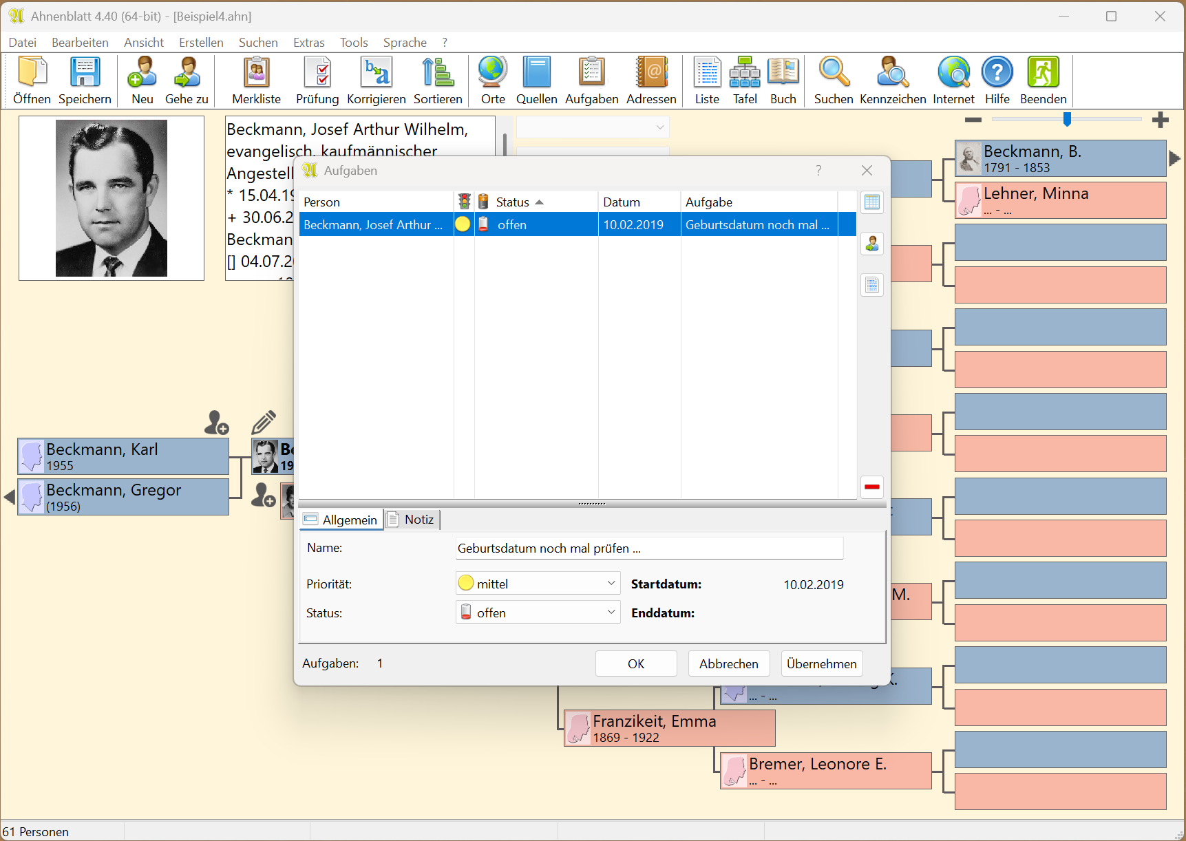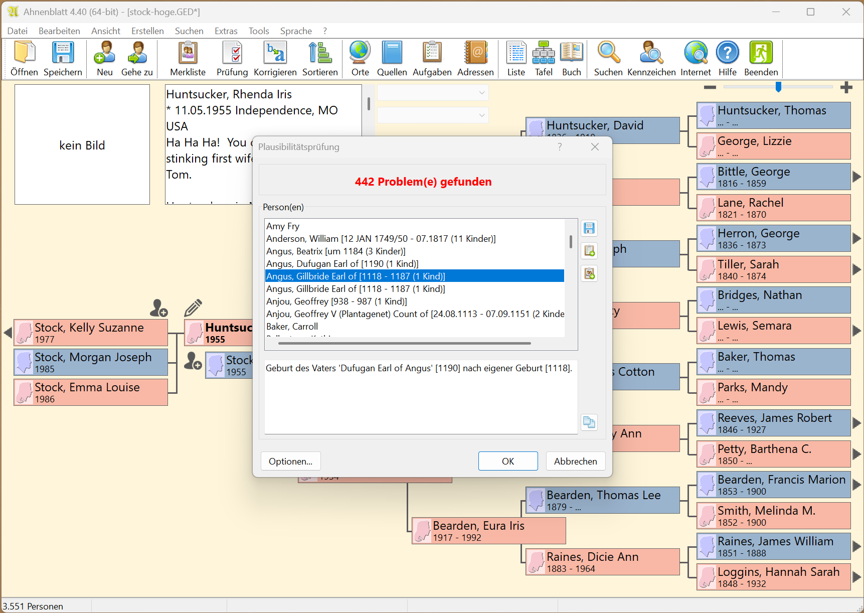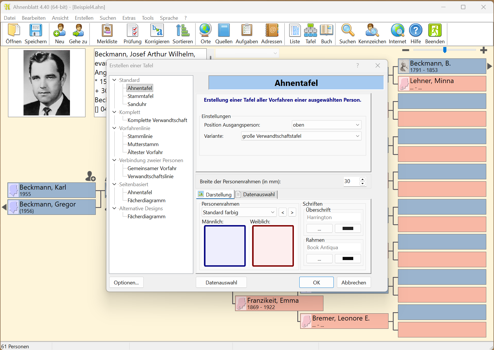 Hier die Programmoberfläche von Ahnenblatt in Bildern (durch Anklicken werden vergrößerte Bilder angezeigt):