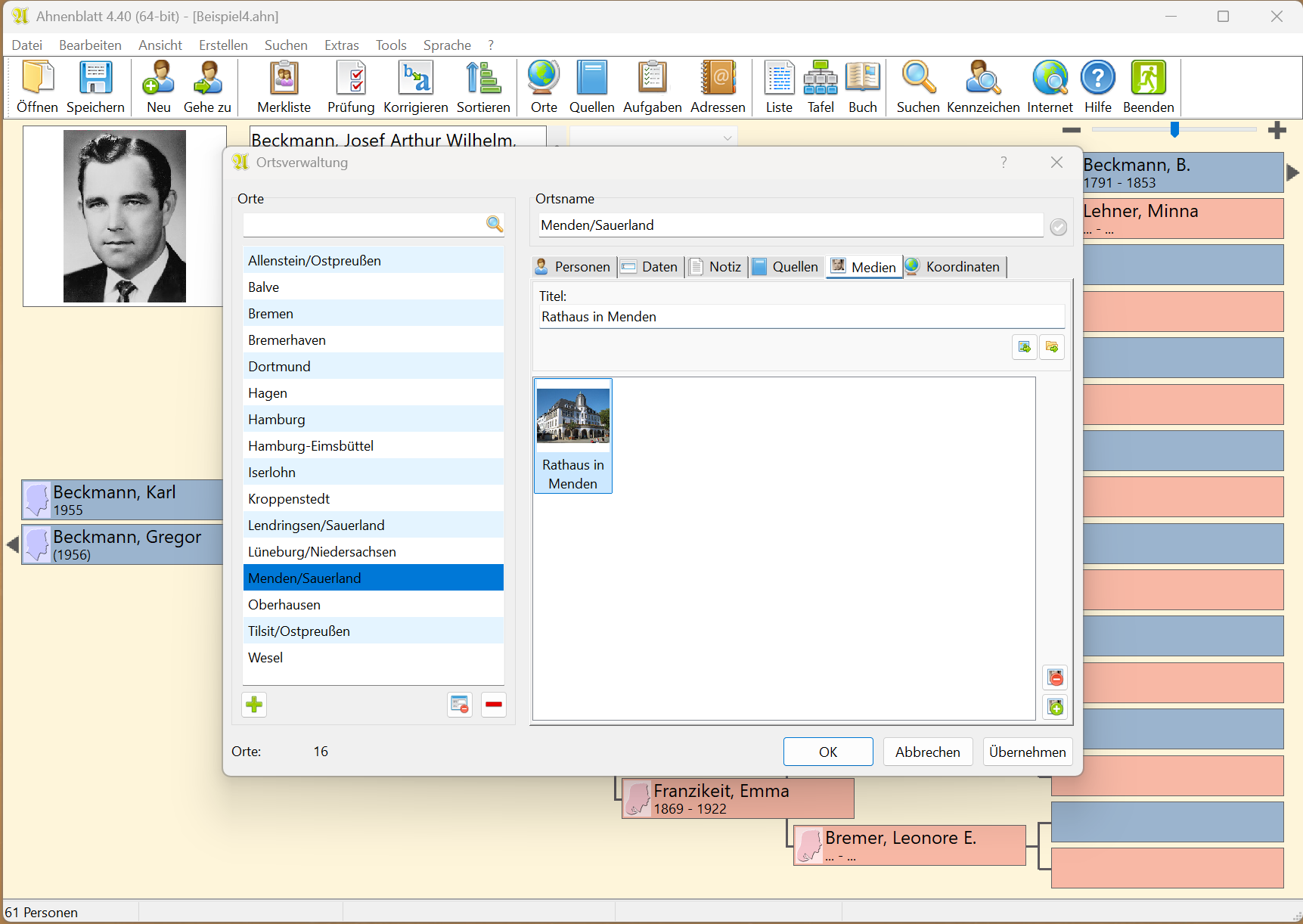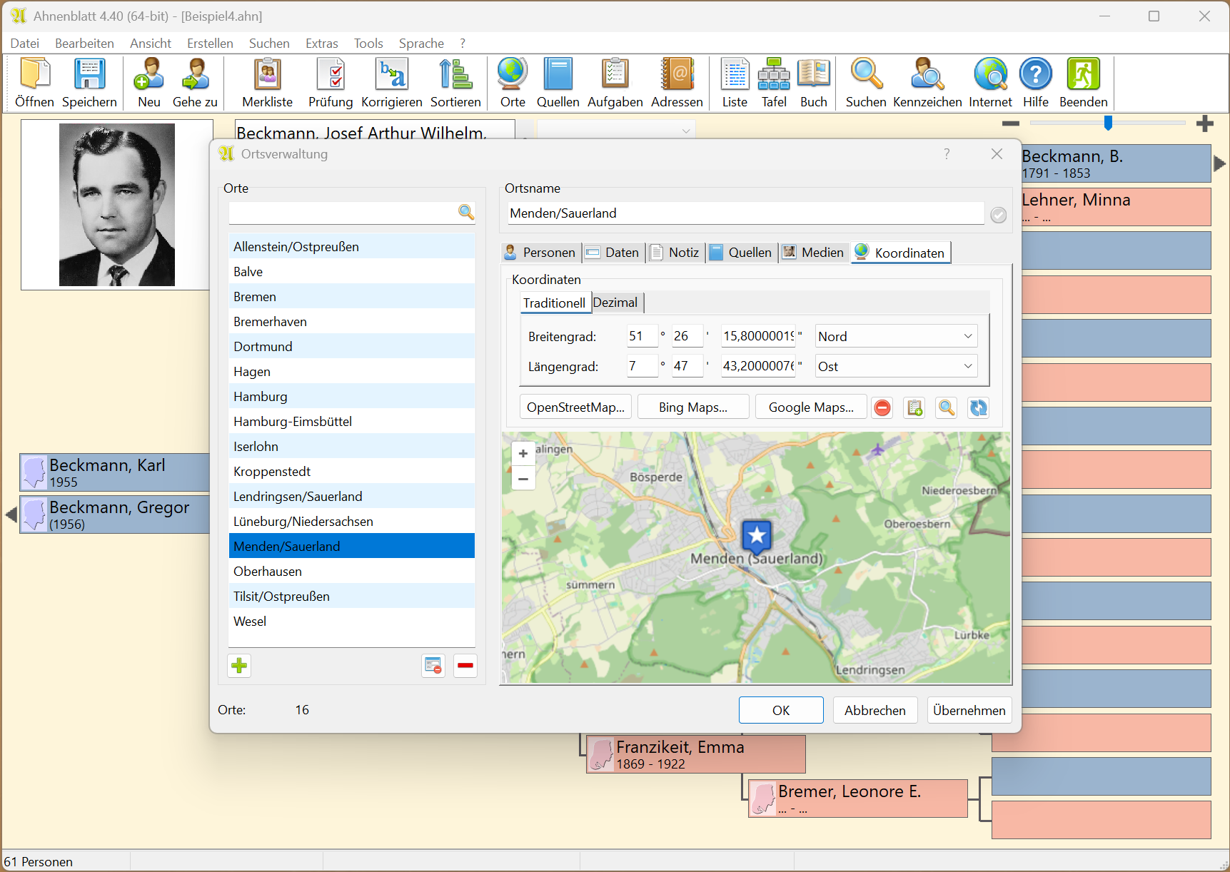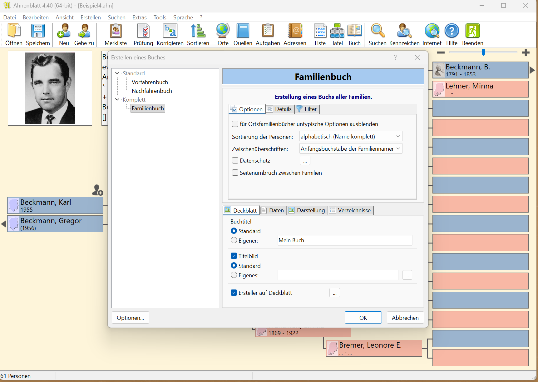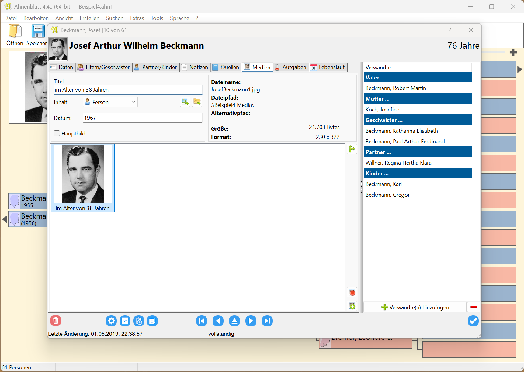 Hier die Programmoberfläche von Ahnenblatt in Bildern (durch Anklicken werden vergrößerte Bilder angezeigt):