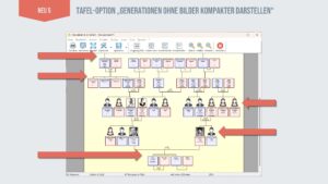 Mit der neuen Tafeloptionen, die man unter „Extras / Optionen…“ dann „Drucken / Tafel / Bilder“ findet, gibt es nun mit der Option „Generationen ohne Bilder kompakter darstellen“ Abhilfe. Ahnenblatt reserviert in Generationen ohne Profilbilder keinen Platz mehr und die „bilderlosen“ Generationen werden dadurch kompakter dargestellt. Das macht sich besonders bemerkbar, wenn man in der Tafel mehr Generationen ohne als mit Profilbilder hat.