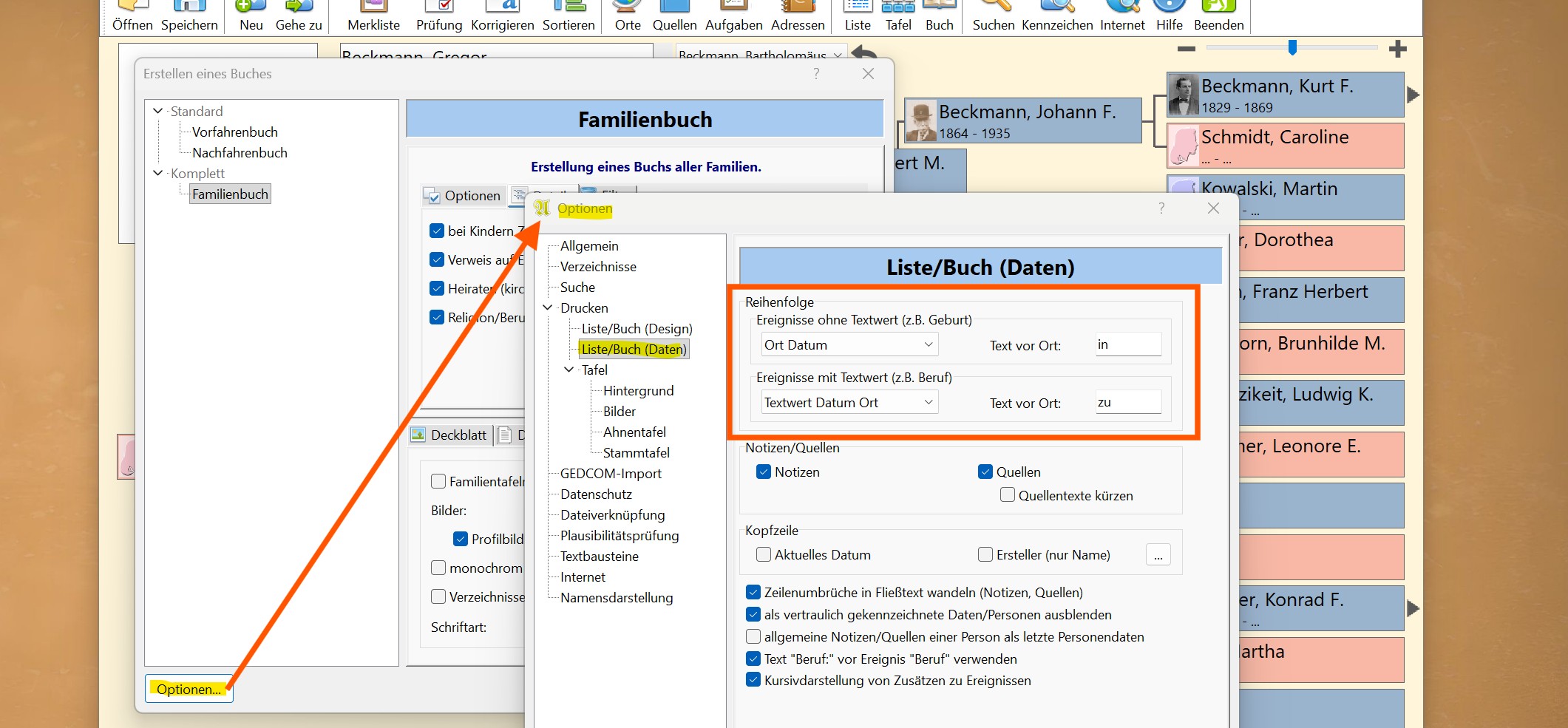 Wie das in der Praxis im Familienbuch aussehen kann, habe ich in Beispielen als Bilder unten angefügt. Entsprechend gelten diese neuen Optionen auch für Listen.